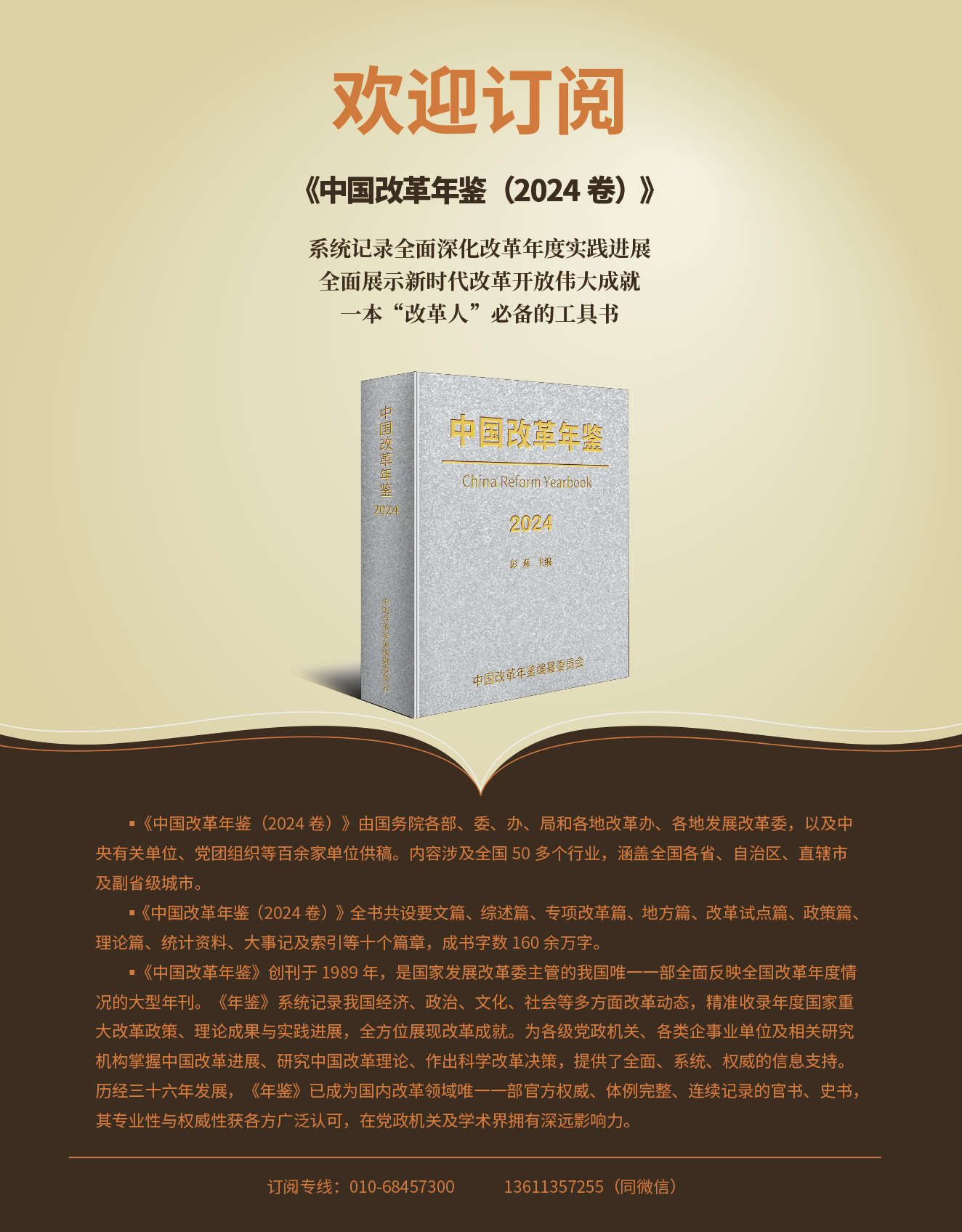 《中國(guó)改革年鑒》創(chuàng)辦于1989年,原名《中國(guó)經(jīng)濟(jì)體制改革年鑒》。是全面反映中國(guó)改革年度進(jìn)展情況的國(guó)家級(jí)大型年刊。