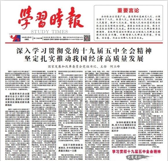 黨的十九屆五中全會審議通過了《中共中央關(guān)于制定國民經(jīng)濟(jì)和社會發(fā)展第十四個(gè)五年規(guī)劃和二〇三五年遠(yuǎn)景目標(biāo)的建議》,全面擘畫了我國發(fā)展新征程的宏偉藍(lán)圖,是指引我們實(shí)現(xiàn)第一個(gè)百年奮斗目標(biāo)之后向第二個(gè)百年奮斗目標(biāo)進(jìn)軍的行動指南,我們要自覺把思想和行動統(tǒng)一到以習(xí)近平同志為核心的黨中央重大決策部署上來,深入學(xué)習(xí)領(lǐng)會、全面貫徹落實(shí)。