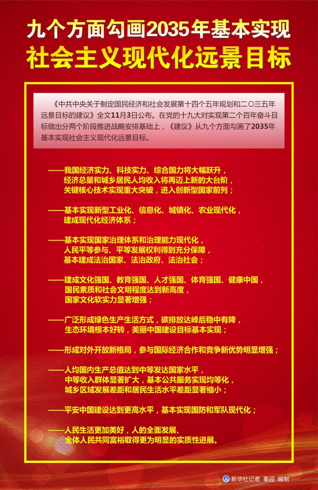 黨的十九屆五中全會根據(jù)第一階段“基本實現(xiàn)社會主義現(xiàn)代化”的任務(wù),明確提出了2035年遠景目標(biāo)和“十四五”發(fā)展目標(biāo)。盡管這些規(guī)劃目標(biāo)以定性描述為主,沒有明確量化目標(biāo),但也十分具體,蘊含了定量要求,在起草文件過程中也做了大量測算,心中是有數(shù)的。