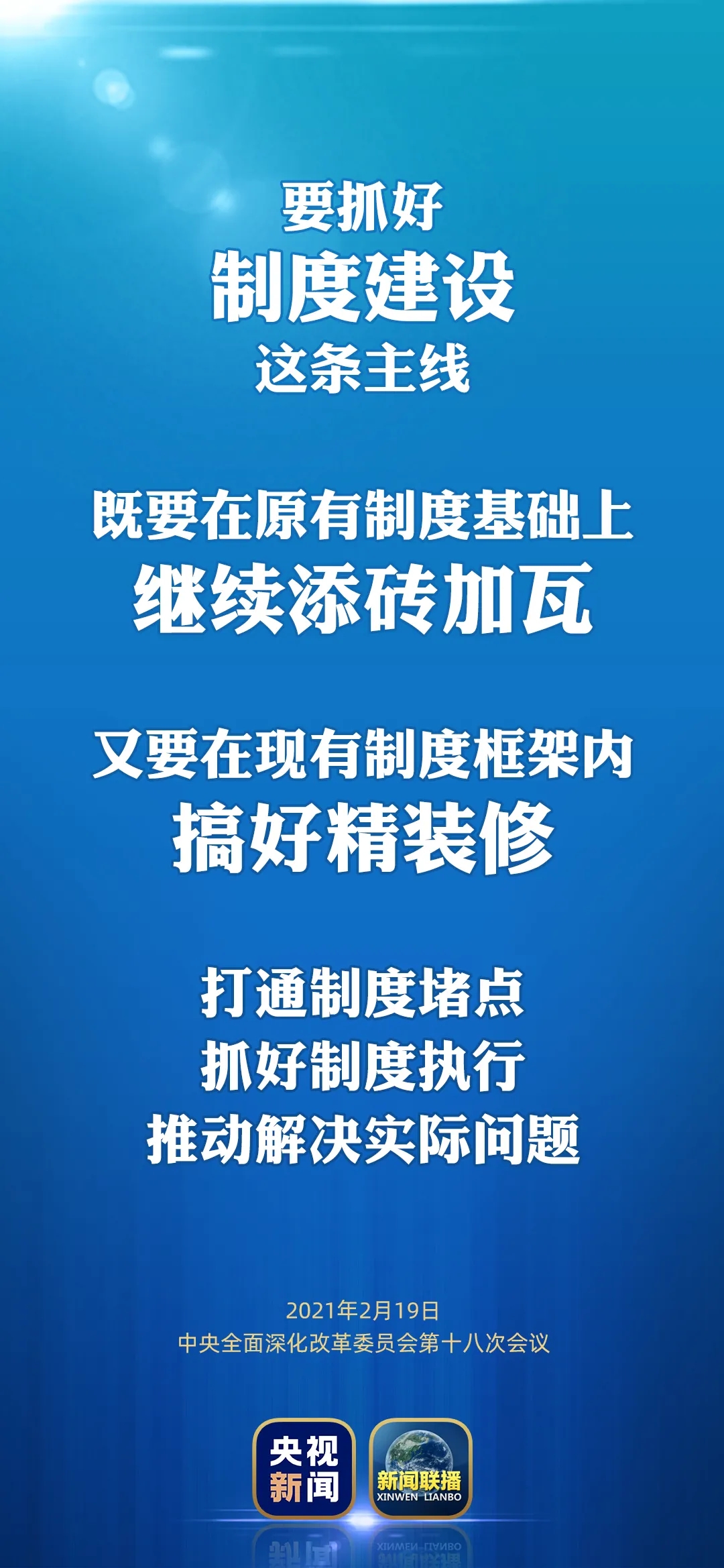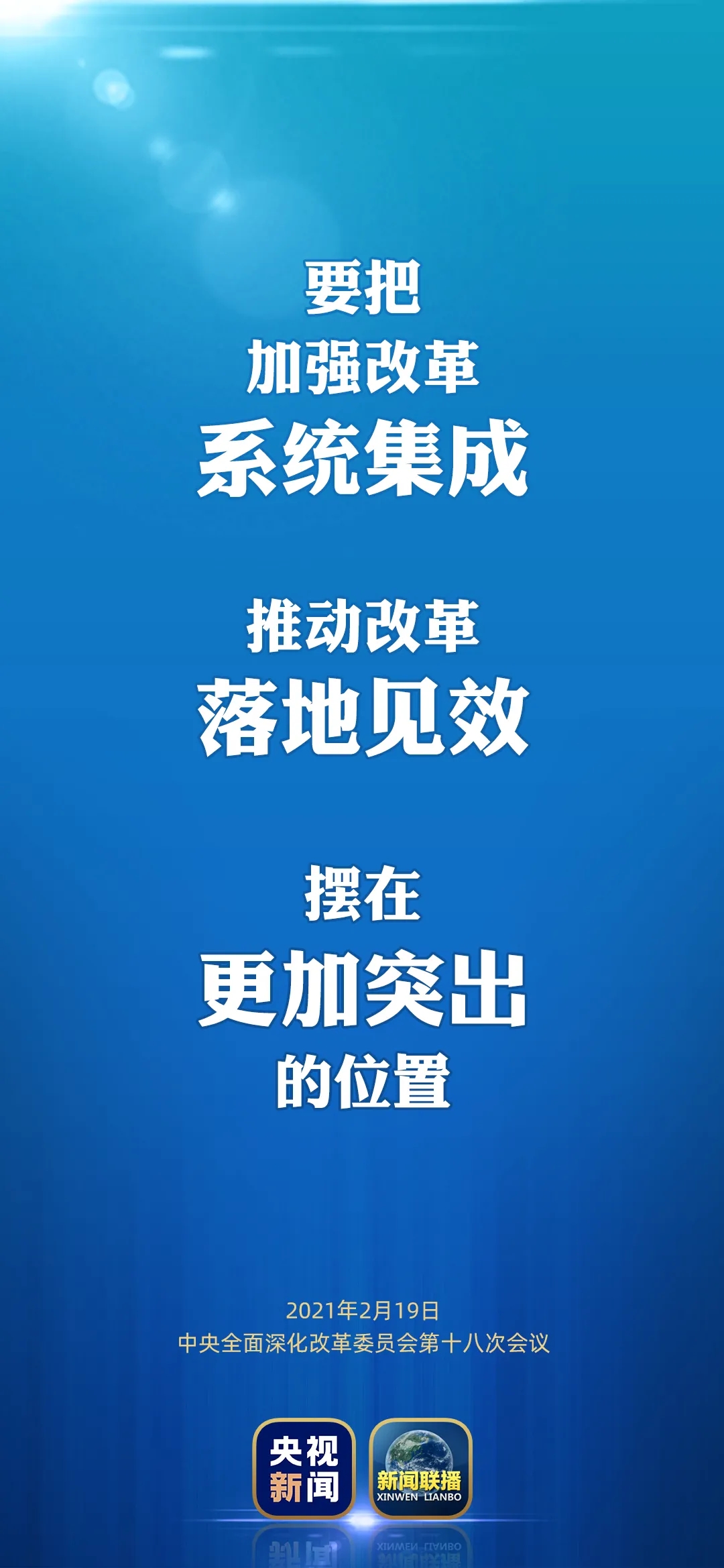 2月19日,中共中央總書記、國家主席、中央軍委主席、中央全面深化改革委員會主任習(xí)近平主持召開中央全面深化改革委員會第十八次會議并發(fā)表重要講話。他強(qiáng)調(diào),要完整、準(zhǔn)確、全面貫徹新發(fā)展理念,更加精準(zhǔn)地出臺改革方案,推動改革向更深層次挺進(jìn)。來看梳理→