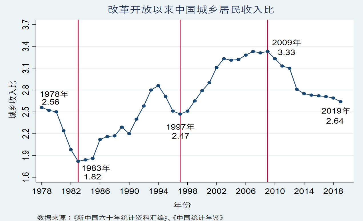 圖5:改革開放以來中國(guó)城鄉(xiāng)居民收入比