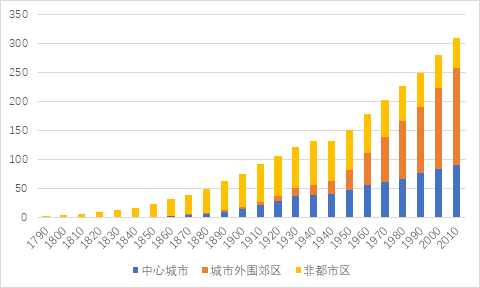 還有鄉(xiāng)村和小城鎮(zhèn),在郊區(qū)化過程中這些新形態(tài)開始快速增長(zhǎng)。