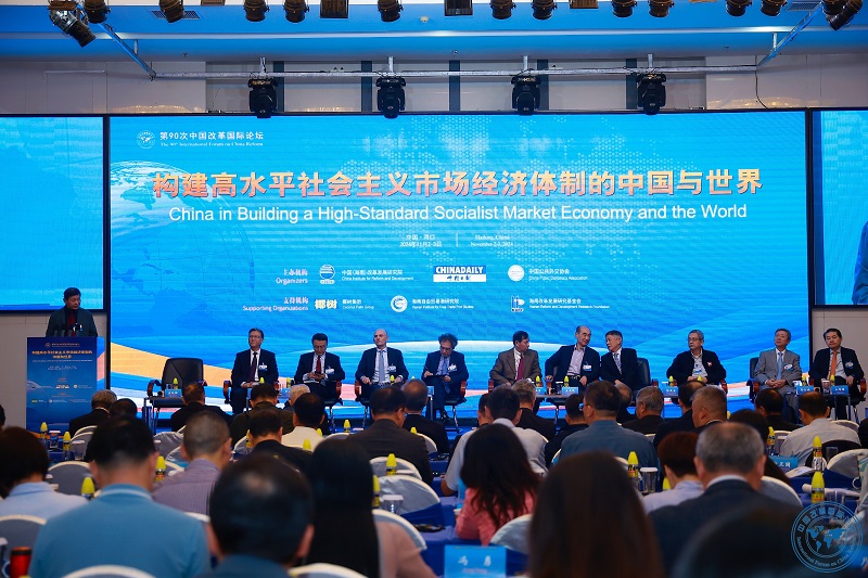 為學(xué)習(xí)貫徹黨的二十屆三中全會(huì)精神,以進(jìn)一步全面深化改革推進(jìn)中國(guó)式現(xiàn)代化,11月2日,中國(guó)(海南)改革發(fā)展研究院、中國(guó)日?qǐng)?bào)社、中國(guó)公共外交協(xié)會(huì)聯(lián)合主辦的“構(gòu)建高水平社會(huì)主義市場(chǎng)經(jīng)濟(jì)體制的中國(guó)與世界——第90次中國(guó)改革國(guó)際論壇”在海南??谡介_(kāi)幕。來(lái)自32個(gè)省、市、自治區(qū)、特別行政區(qū)的政府、高校、科研機(jī)構(gòu)、企業(yè)和媒體代表以及24個(gè)國(guó)家和國(guó)際組織、使領(lǐng)館代表參加本次國(guó)際論壇。海南省委書(shū)記馮飛在開(kāi)幕式后會(huì)見(jiàn)世界自由區(qū)組織主席穆罕默德·阿扎魯尼,海南省人民政府省長(zhǎng)劉小明出席開(kāi)幕式并致辭。