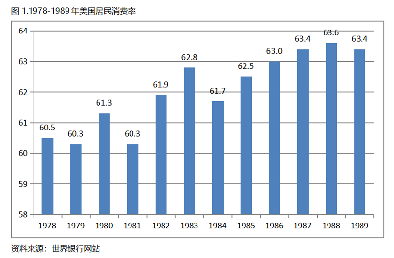 美國是1978年人均GDP超過1萬美元的,在1978-1989年的12年期間(選擇12個年份目的是與“十五五”時間跨度相對應(yīng),下同),居民消費率雖然有波動,但總體是在高位上呈現(xiàn)出提高的走勢,1989年比1978年提高了2.9個百分點。
