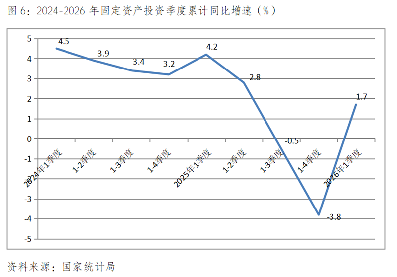 (二)固定資產(chǎn)投資增速由上年全年下降轉(zhuǎn)為增長,比上年同期回落。一季度固定資產(chǎn)投資(不含農(nóng)戶)同比增長1.7%,上年全年為下降3.8%,比上年同期增長4.2%回落2.5個(gè)百分點(diǎn)。與上年同期相比,三次產(chǎn)業(yè)投資增速全面回落,第二產(chǎn)業(yè)回落更為明顯,一季度第一產(chǎn)業(yè)投資同比增長15.9%,比上年同期增長16.0%回落0.1個(gè)百分點(diǎn);第二產(chǎn)業(yè)投資增長5.8%,比上年同期增長11.9%回落6.1個(gè)百分點(diǎn);第三產(chǎn)業(yè)投資下降1.0%,上年同期為增長0.1%。