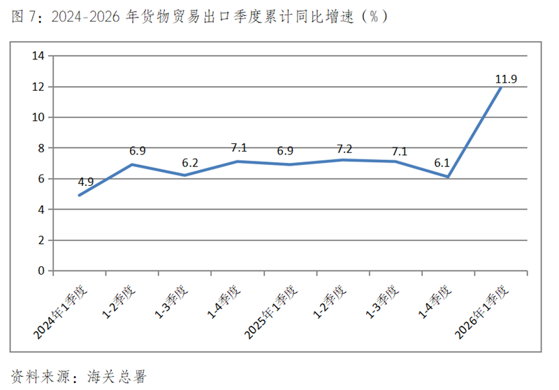 (三)貨物出口增速比上年全年回升較多,比上年同期也保持較多回升。一季度貨物出口總值同比增長11.9%,比上年全年增長6.1%回升5.8個(gè)百分點(diǎn),比上年同期增長6.9%回升5.0個(gè)百分點(diǎn),其中對歐盟出口同比增長18.0%,比上年同期增長4.9%回升13.1個(gè)百分點(diǎn);對美國出口下降18.3%,上年同期為增長5.6%;對東盟出口增長17.5%,比上年同期增長9.2%回升8.3個(gè)百分點(diǎn);對拉丁美洲出口增長6.6%,比上年同期增長10.7%回落了4.1個(gè)百分點(diǎn);對非洲出口增長29.0%,比上年同期增長12.5%回升了16.5個(gè)百分點(diǎn)。